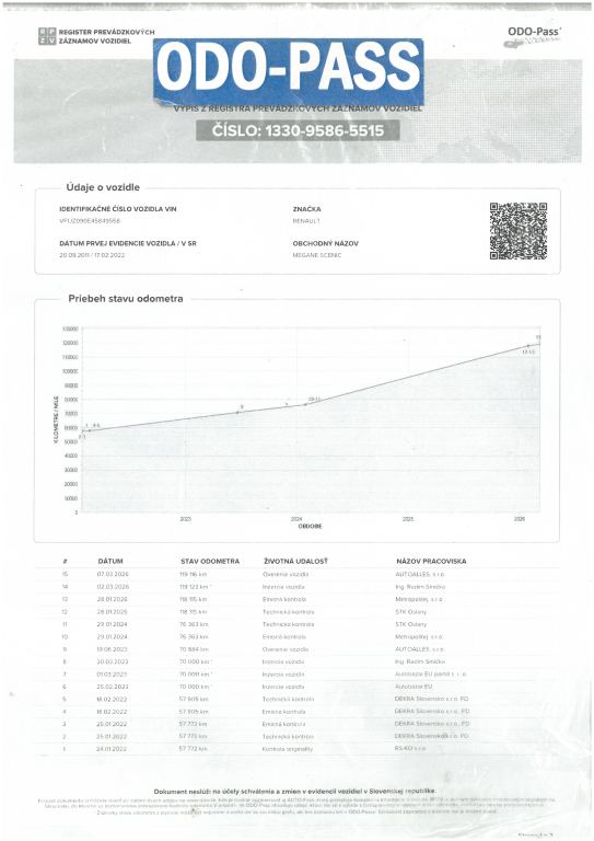 Vozidlo dovezené z Francúzska. Najazdené kilometre si môžete overiť aj u ktoréhokoľvek oficiálneho predajcu RENAULT. Posledná servisná prehliadka pri 99 000 km. Výmena rozvodov pri 65 000 km. 12/2025 menený olej v prevodovke pri 116 000 km. Ku vozidlu je vystavený výpis zo štátneho Registra prevádzkových záznamov vozidiel - ODO-PASS, ktorý zobrazuje históriu najazdených kilometrov vozidla. Karoséria vozidla v zachovalom stave, iba bežné opotrebenie vzhľadom na vek a počet najazdených kilometrov. Interiér udržiavaný a čistý. Automatická prevodovka radí hladko, bez trhania. Podvozok a nápravy v poriadku, pri jazde nič nebúcha ani nevibruje. Obuté zimné pneumatiky na 17" hliníkových diskoch. Ku vozidlu je 2 x kľúč. STK/EK platná do 1/2028.Na vozidlo je možný úver bez akontácie! Vybavíme ho priamo u nás na počkanie, výšku akontácie a splátky Si nastavíte sami. AUTOALLES: najväčší slovenský autobazár, už od roku 1990, doživotná záruka na pôvod vozidla s garanciou vrátenia peňazí. Tešíme sa na vašu návštevu.AUTOALLES: najväčší slovenský autobazár, už od roku 1990, doživotná záruka na pôvod vozidla s garanciou vrátenia peňazí. Tešíme sa na vašu návštevu.